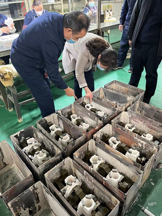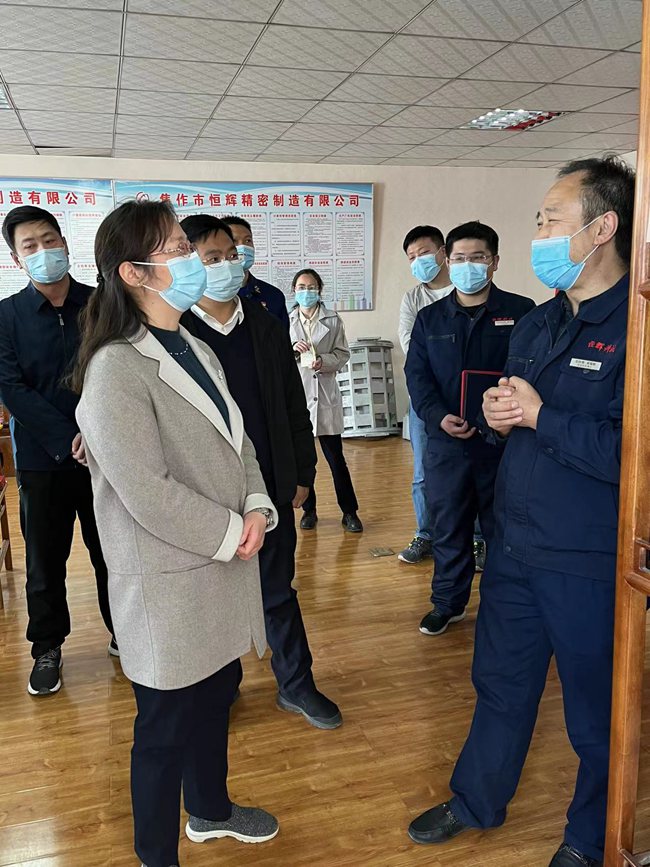 馬村區(qū)王婕區(qū)長帶領(lǐng)消防,安全等一行人員來我廠檢查指導(dǎo)工作,總經(jīng)理張福根向其介紹了安生生產(chǎn)工作情況、防疫工作情況、產(chǎn)品經(jīng)營情況并陪同實地參觀了生產(chǎn)車間,分別講解各部門生產(chǎn)工序幫助其更全面了解我公司的情況。